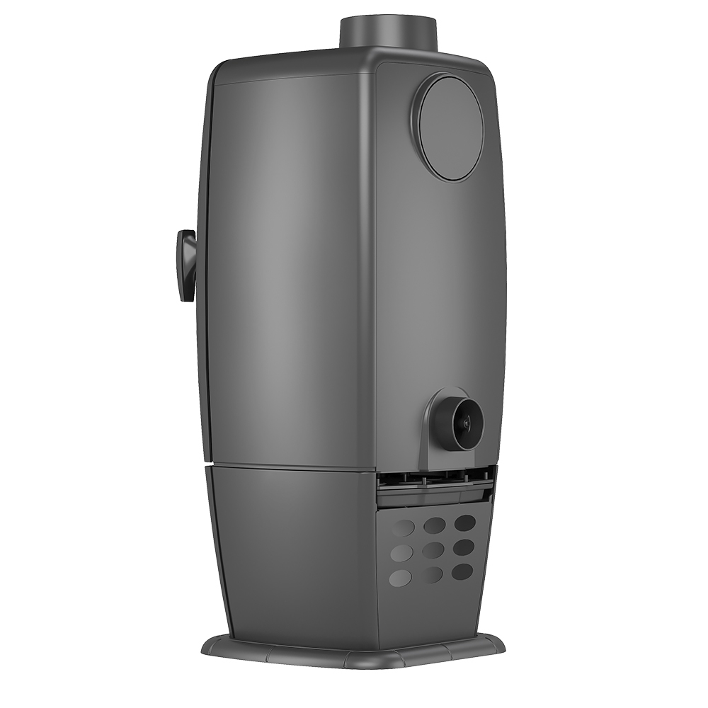 Патрубок дымохода – универсальный, со сменным положением. Он может быть установлен сверху или сзади в зависимости от размещения печи в помещении.