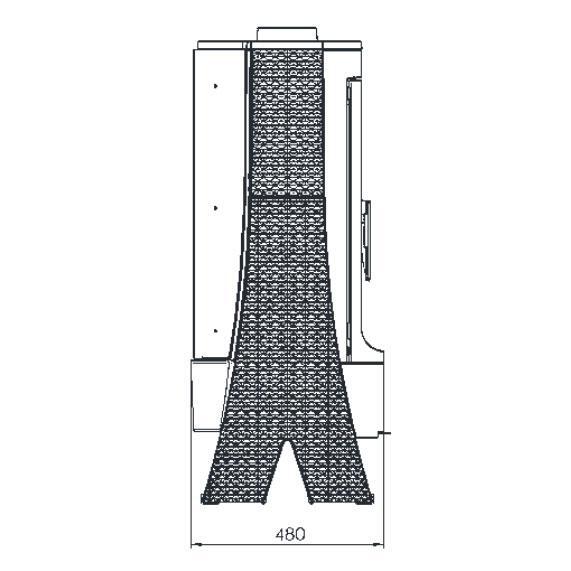 В печи-камине RICH -15 предусмотрена система вторичного дожига. С помощью этой функции по каналам подачи вторичного воздуха поступает воздух, который, нагреваясь, поступает через дефлектор в топку, перемешивается с газами - продуктами горения, чем вызывает повторное возгорание.